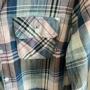 CROFT & BARROW WOMEN'S BUTTON UP PLAID SHIRT LONG SLEEVES POCKET COTTON M