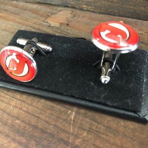 New NEW JERSEY DEVILS NHL HOCKEY Logo Cuff Links. Listing is for a two piece set approximately 1" size each packaged in plastic bag as sample shown.