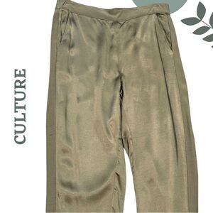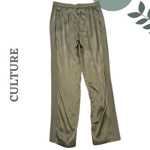 CULTURE CUJosina Satin Viscose Wide-Leg Pants – Olive Green – Size Large
