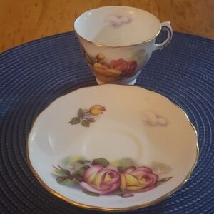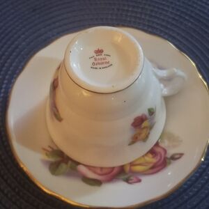 Royal Osborne cup and saucer. White with pink, yellow and green