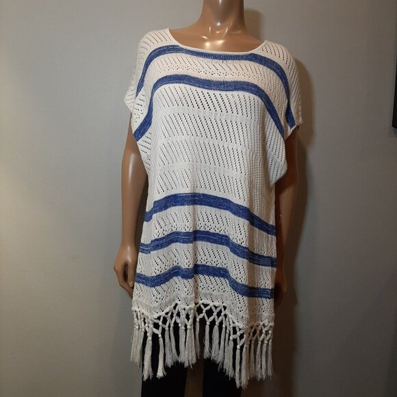 CUPCAKES & CASHMERE Pura Vida Striped Poncho Knit Tunic Top Cover Up
