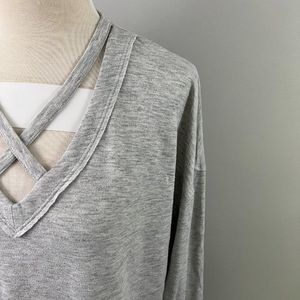 CUPIO Grey Criss Cross Front Sweater (M) Length: 28” Armpit to Armpit: 23” Inventory 27:21