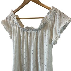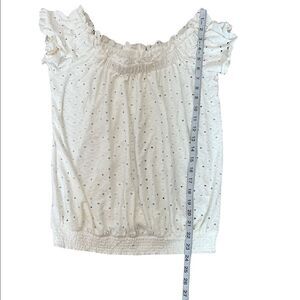 CUPIO White Eyelet Elastic Neckline Short Sleeve Elastic Bottom Bubble Top S