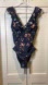 CUPSHE Navy Blue Floral Women's V Neck One Piece Ruffle Shoulders Swimsuit Sz S
