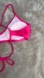 Stylish pink bikini top with adjustable tie straps and an open back. Perfect for your next beach vacation.