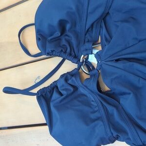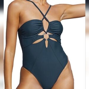 CUPSHE Women's One Piece Swimsuit Plunge Neck Cutout High Cut O Ring - L NWT
