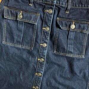 Carpenter style pockets and buttons Down FRONTthe skirt.