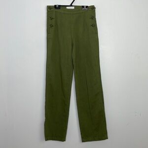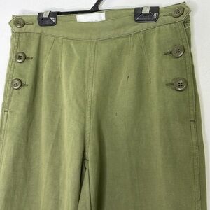 NWOT. Never worn. 80% cotton 20% linen. Side buttons on the waist. High waisted straight legs. Minimalist, chic, office, lagenlook. Measure lay flat: waist 13,5'' hips 20'' rise 10'' inseam 30'' bottom wide 8,5''. Sold as it.