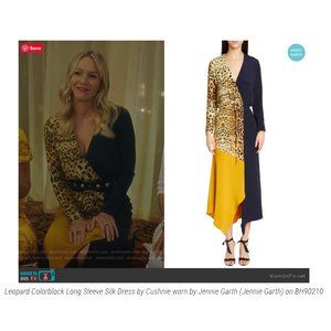 The gorgeous V-neck Cushnie™ Color Block Long Sleeved Dress with waist tie made from a luxurious silk fabrication is sure to be a hit this season.
