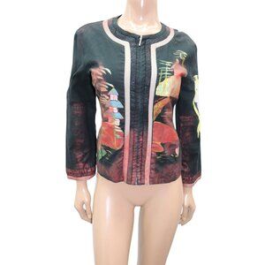 CUSTO BARCELONA Painterly Couture Wearable ART Printed Zip-Up Blazer Jacket L