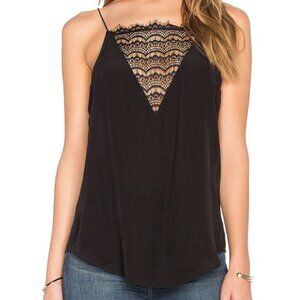 Danish design brand CUSTOMMADE Women's Black Tank Top Lace detail Ajdustable straps with an elegant button 100% silk Fits size M