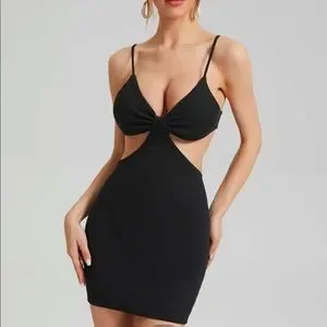 adorable shein black cut out mini dress • great for vacation • never worn • great condition • size small