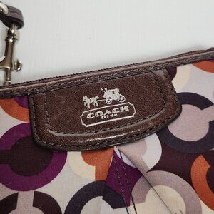 CUTE COACH Madison Signature Sateen Purple & Brown small Wristlet with Tag Strap
