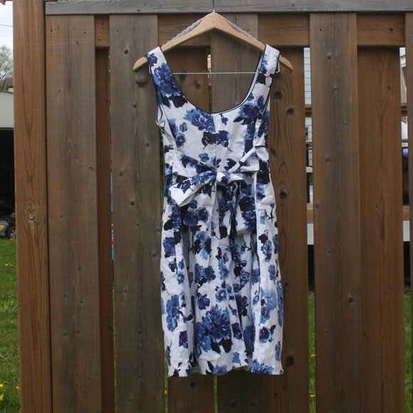 CUTE Cupcake Dress Women's Size 6 Bow Tie Back Blue Flowers
