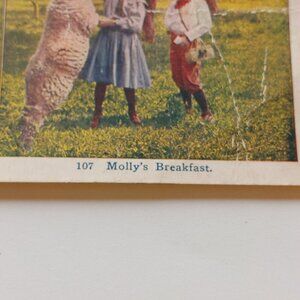 CUTE Victorian Stereograph Card "Molly's Breakfast" Children feeding a Sheep