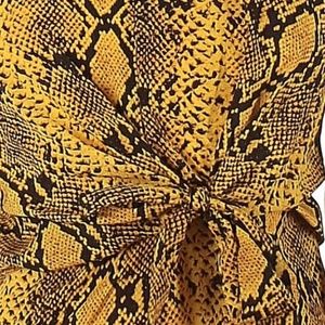 This dress is super cute animal print and the yellow will brightens up anyones day. Very flattering pattern and light weight material. It has a bow in the mid section further complementing the form. Not a wrap dress however.