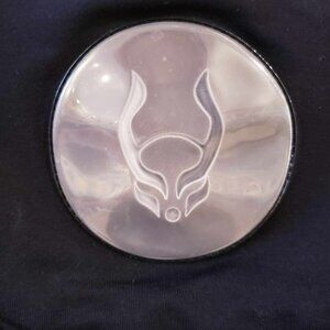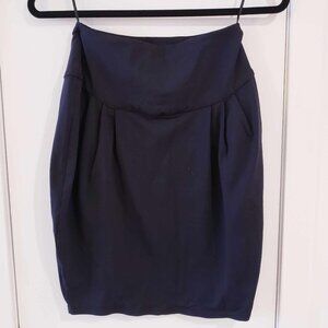 Vintage mini black pencil skirt in jersey with silver reflective plastic decoration with the Cyberdog logo on the front.