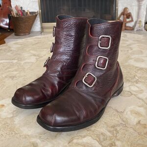 CYDWOQ FUTURE 3 Buckle Burgundy Leather Moto Boots Handcrafted