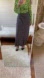 Charcoal grey faux wrap maxi skirt with a faux knot at the waist, lining at the top half, long side slit with adjustable waist in a stretch blend fabric much like a soft faux suede of soft quality t shirt. The hems & edges are raw cut giving a very casual look in a classic design.