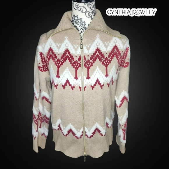 CYNTHIA ROWLEY Patterned Zip Up Sweater - Small