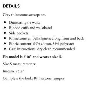 CYNTHIA ROWLEY Rhinestone Embellished Grey Sweatpants