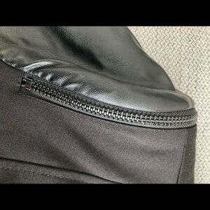 CYNTHIA ROWLEY Sz L Fabric Vegan Leather Accent Sleeves Jacket Blazer