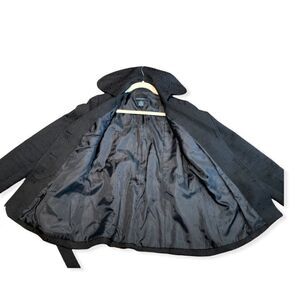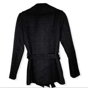 Beautiful brocade details. Black. Excellent condition. Lined. Size S. Belted. See photos for condition and measurements to ensure proper fit.