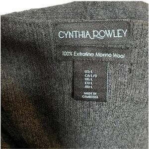CYNTHIA Rowley Grey Extrafine Merino Wool Cardigan With Side Ties 3/4 sleeves