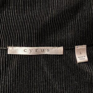 Hailing from the brand Cyrus, this contemporary, well-made black blouse is lightweight, stretchy, and comprised of 100% polyester.