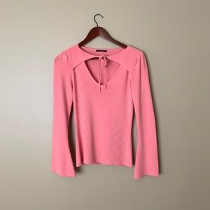 CYRUS Coral Long Sleeve V-neck Front Tie Top. Has interesting overlay & tie design in front with diamond pattern in fabric. Cuffs are flared for that flamenco feel. Size is estimated to be Small. Measurements: Chest 33”, Length (shoulder to bottom) 24", Arm length 24.5". Like new, never worn. Please take advantage of the discount by bundling 3 or more listings 🛍