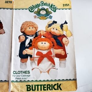 Vintage Butterick patterns for Cabbage Patch Doll clothes, a must-have for collectors and enthusiasts of Cabbage Patch Kids. This set includes paper patterns to create a variety of outfits for your beloved dolls, adding a touch of nostalgia to your collection. Perfect for those who appreciate the charm of handmade doll clothing, these patterns allow you to customize your dolls' wardrobes with unique and timeless pieces. Embrace the creativity and craftsmanship of yesteryears with these classic patterns from the Cabbage Patch franchise. Patterns are cut but in good condition.