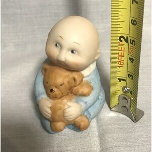 Cabbage Patch Kids Bisque Figurine Baby Boy Blue Sleeper 2.5" Teddy Bear 1984