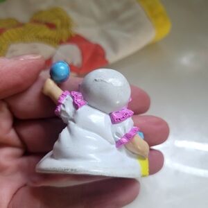 3. PVC mini baby with bonnet and dress with rattle and bottle. no marks.