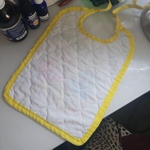4 quilted bib with yellow trim. No rips or loose stitching. small stain on the logo.
