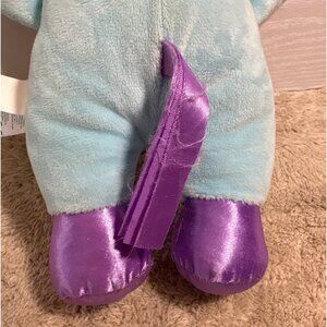 This Cabbage Patch Kids Fantasy Friends doll features a soft plush body in a whimsical unicorn costume with vibrant blue and purple hues, providing charm and collectible appeal.