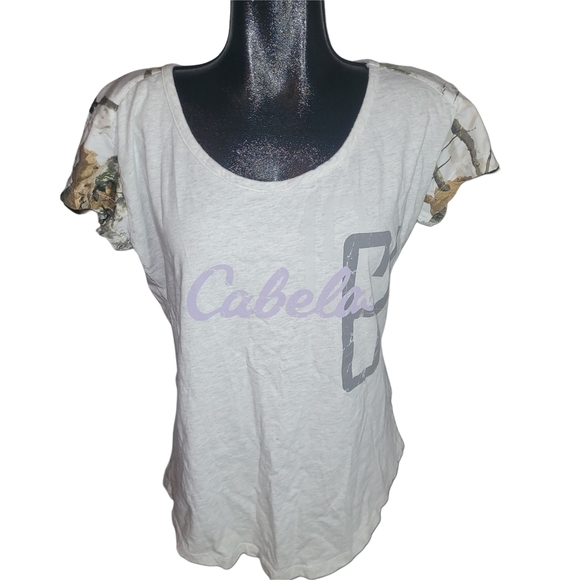 Stylish and comfortable, this Cabela's women's top features a classic light gray color with camo detailingon sleeves and back yoke area. Perfect for casual outings. 100%cotton