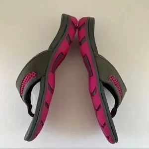 Cabela’s kids grey pink thong flip flop waterproof sandals. Good used condition. Size 32