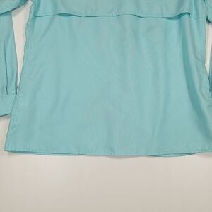 Cabelas Button-Down Shirt L Large Womens Regular Fit Long Sleeve Green White