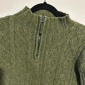 Cabelas Womens Heavy 100% Cotton 1/4 Zip Cable Knit Sweater Green Size Large