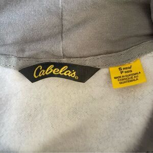 In excellent condition. Cabela's light grey embroidered hoodie. Heavier weight hoodie that is great fore being outdoors. Light grey and white camo with a grey Cabela's logo embroidered on the front. Large front kangaroo style pocket. Flat lay measurements: 19.5" pit to pit, 24" length.