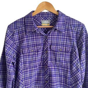 Cabela's Women's Purple and White Checkered Heavier Weight Flannel Shirt