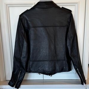 🖤 Elevate your wardrobe with this sleek Cabi leather moto jacket in classic black. It’s new without tags.