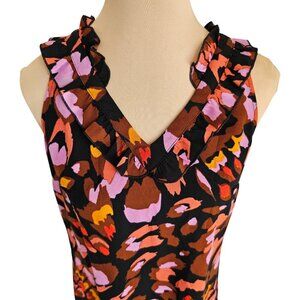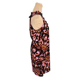 Cabi Brown Purple Pink Ruffle Mini Dress Sz XS