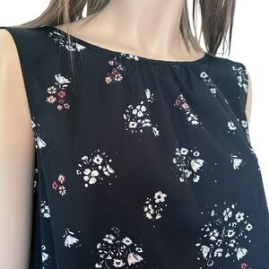 Cabi Floral Tunic Top Tank Blouse Sleeveless Keyhole back tie ruching XL NWOT