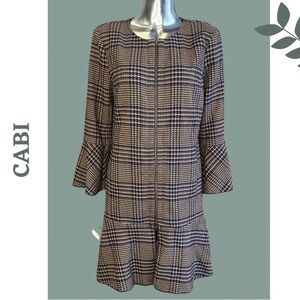 Cabi Flounce Jacket Brown Navy Plaid Zipper Front Scoop Neck Size Small