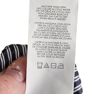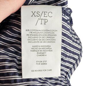 Cabi Navy Blue and White Striped Blouse With Frilly Lace Shoulders Sz XS