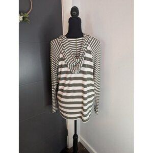 Cabi Playoff Hooded Blouse Lightweight Green and White Striped Hoodie Style 5731 Size Small