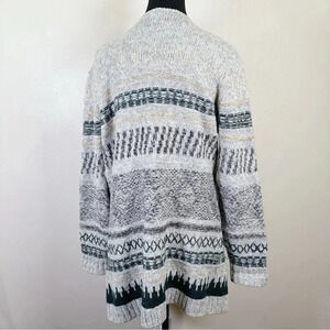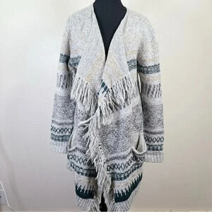 Cabi Sweater Shetland Fringe Open Front Cardigan Southwest Aztec