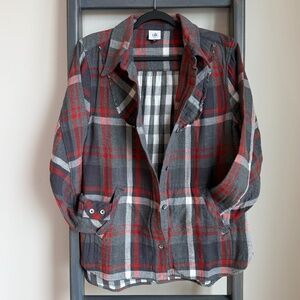 Cabi Tavern Shirt – Red & Grey Plaid Button-Up with Pockets – Size M