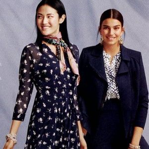 Navel and white print on 100% polyester fabric. Beautiful wash and wear fabric. Brand new. Never worn. Original price $106
